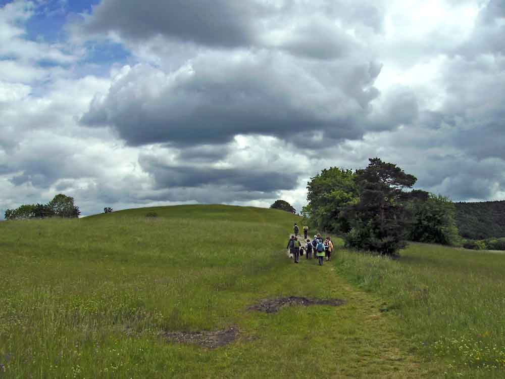 Wir starten in Öschingen und wandern auf den Filsenberg. Der Aufstieg belohnt uns mit einem tollen Blick vom Teufelsloch hinüber zum Farrenberg. Dann tut sich die Orchideenwiese mit vielen verschiedenen Knabenkräutern und anderen wunderschön blühenden Blumen auf. Wir umkreisen den Maisenbühl und nehmen dann die zweite Höhenstufe dieser Wanderung hinauf auf den Bolberg. Der Blick vom Bolberg ist einfach atemberaubend. An der Grillstelle wird gegrillt und gevespert, dann folgen wir dem Albtrauf und wandern hinunter ins Öschenbachtal. Durch die Streuobstwiesen mit blühenden Apfelbäumen kommen wir wieder an den Parkplatz. Grillen/Vesper