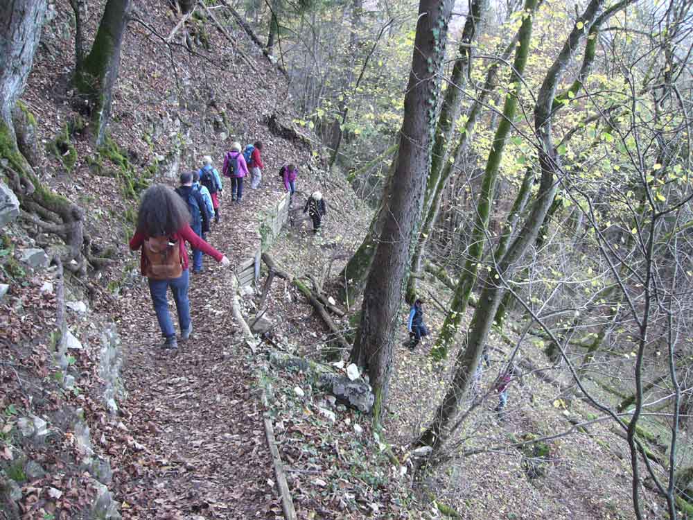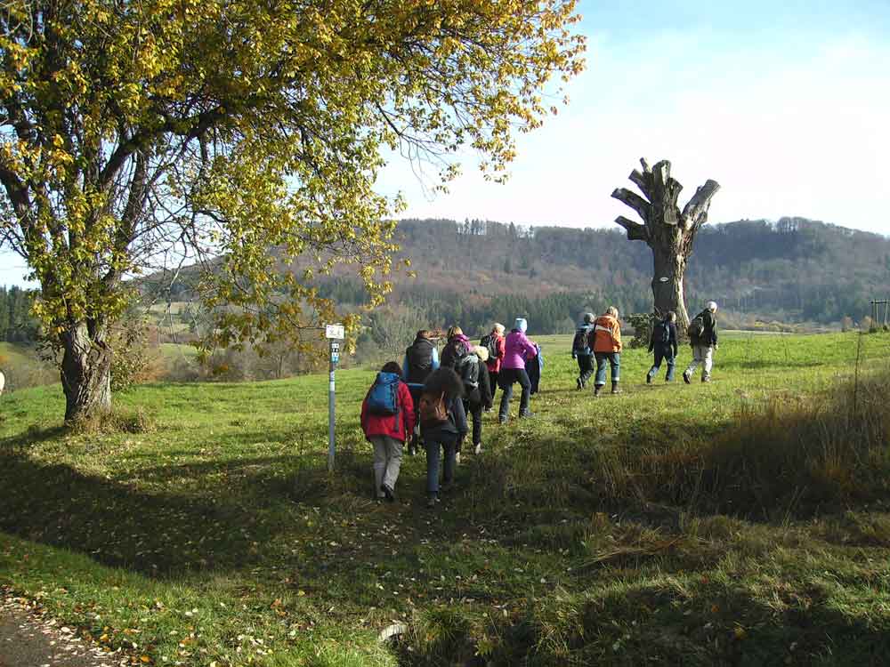 Start ist die Backsteinkirche in Schlatt. Wir wandern aus dem Killertal hinauf zur Wallfahrtskapelle von Schlatt. Über schöne Wiesen erreichen wir den Hangwald. Bald sind wir oben am Traufweg. Dieser schlängelt sich dem Abbruchverlauf der zerklüfteten Alblandschaft entlang bis vor zum Dreifürstenstein. Weit sehen wir ins Vorland nach Tübingen, den Schönbuch und hinüber in den Schwarzwald. Dann steigen wir ab zur Beurener Heide, berühmt für seltene Orchideen. Von dort folgen wir dem romantischen kleinen Bachlauf, der in Schlatt in die Starzel mündet. Vesper