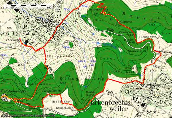 Los gehts am Parkplatz des Thermalbads in Beuren. Durch den Ort erreichen wir den Fuß des Beurener Fels. Beim Aufstieg sehen wir die historischen Gebäude des Freiluftmuseums und das beschauliche Dorf. Oben auf dem hervorspingenden Kalkrifffelsen angekommen werden wir mit einem super Blick ins Tal und hinüber zum Hohen Neuffen belohnt. Immer am Albtraufentlang wandern wir über den Wilhelmsfelsen zur Burgruine Hohen Neuffen. Dort erwartet uns der Kiosk oder das Restaurant zur Einkehr. Bei einem kühlen Getränk genießem wir den Blick hinunter zu den Neuffener Weinbergen und hinüber zum Hörnle und dem Jusi.